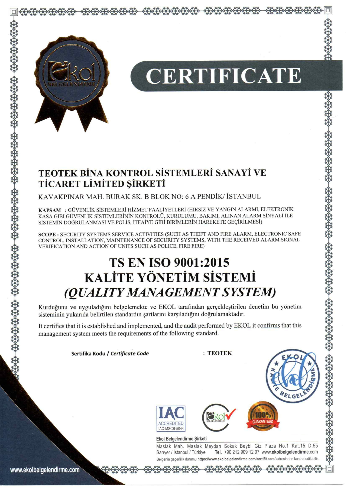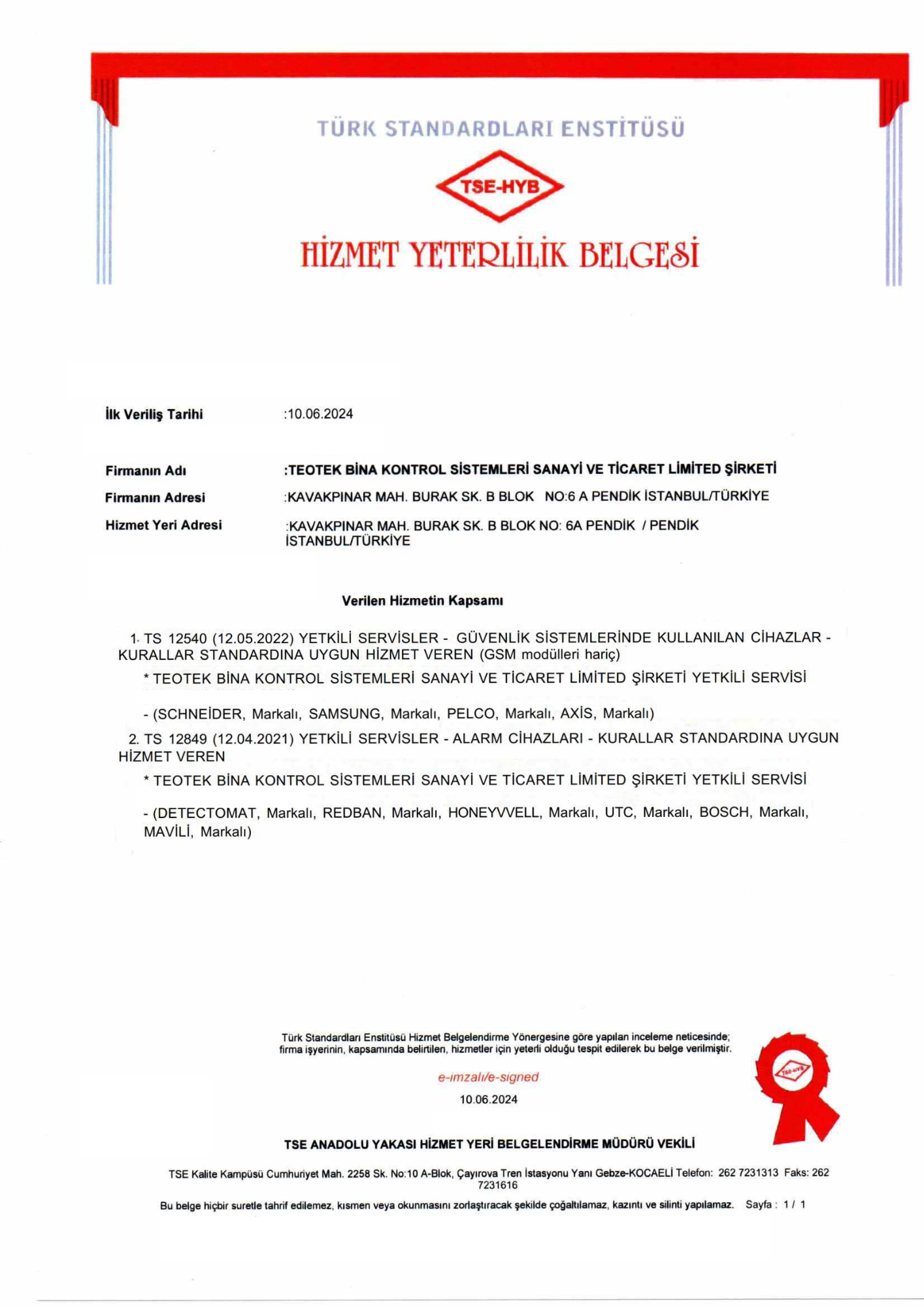 Teotek Elektronik Güvenlik Sistemleri çeyrek asırlık tecrübesini çeşitli sertifika programları dahilinde güçlendirip müşterilerine kaliteli hizmeti hedefler.